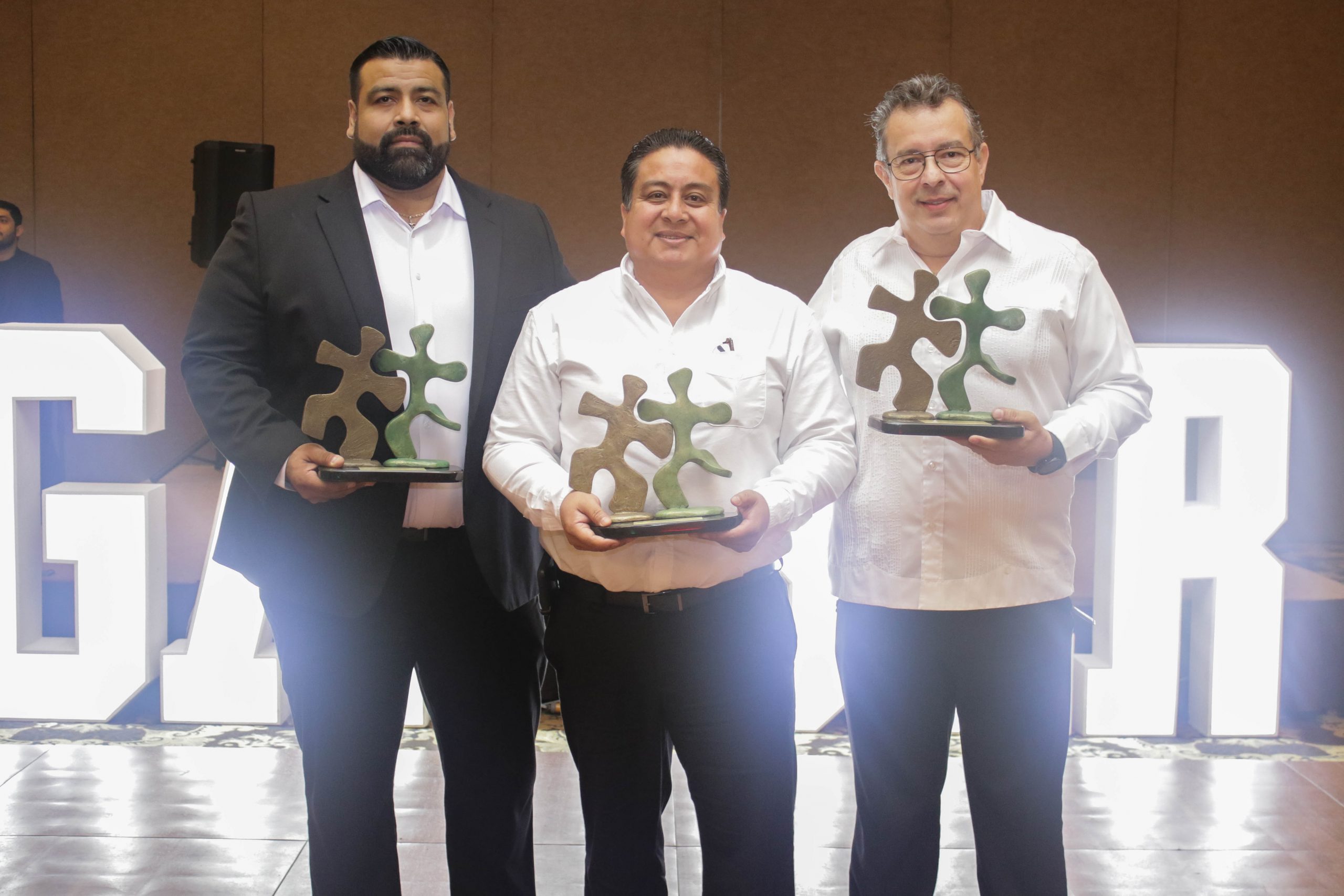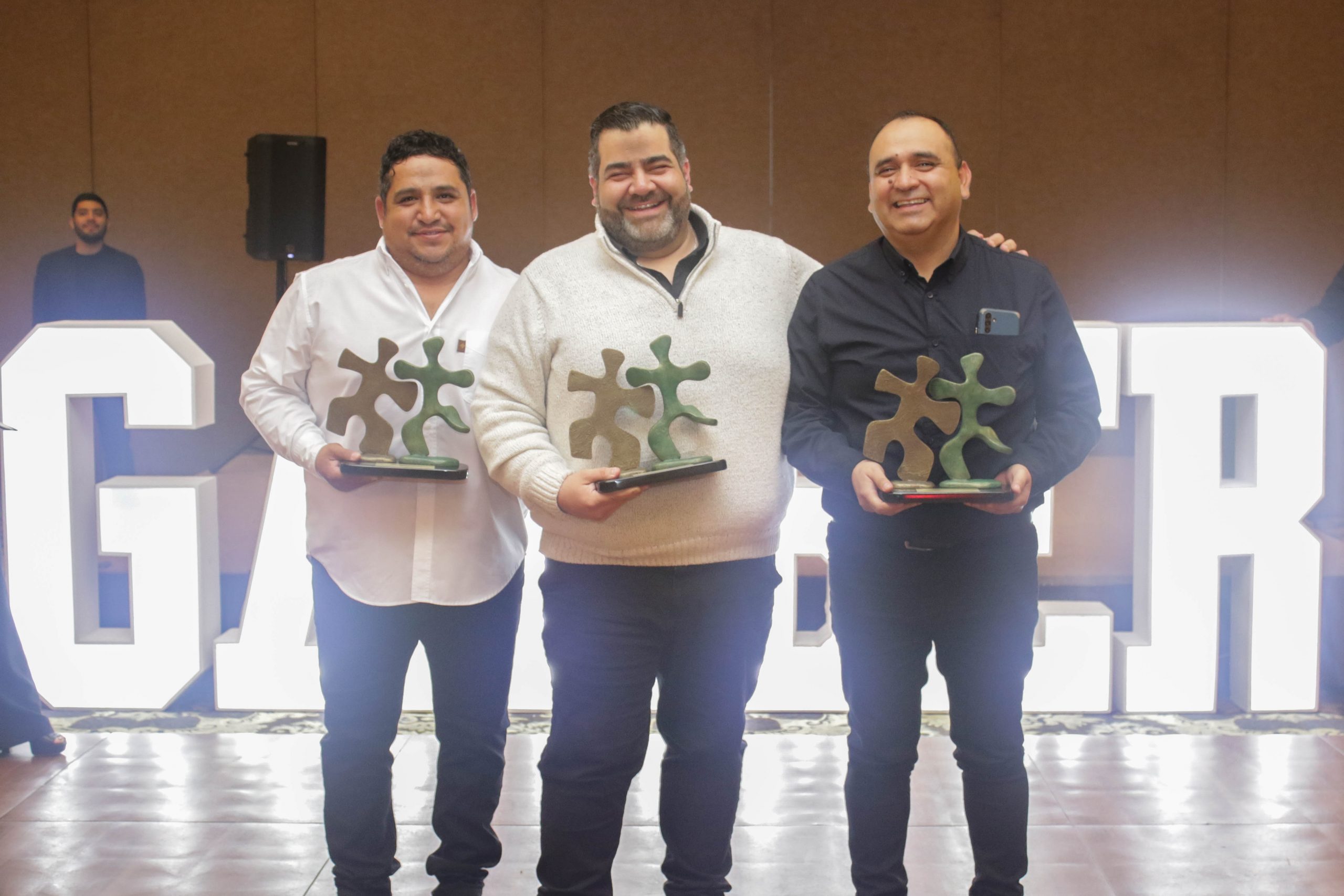 Un momento importante de la noche fue la entrega del reconocimiento a los 3 Colaboradores que tienen más de 25 años con la empresa Eduardo Moreno, Jorge Gómez y Felipe Morales, de manos de los directivos y quienes por supuesto recibieron el galardón “Complemento”  del escultor Jorge Coste, hecho especialmente para esta ocasión tan importante.